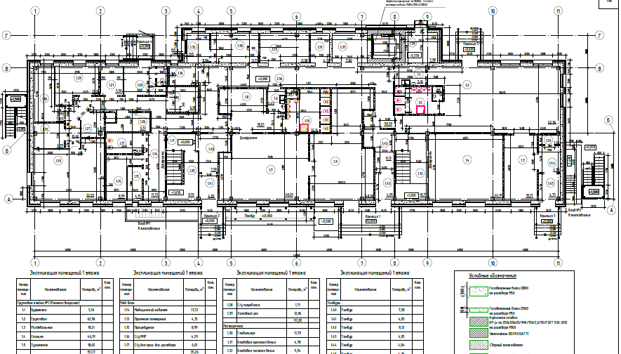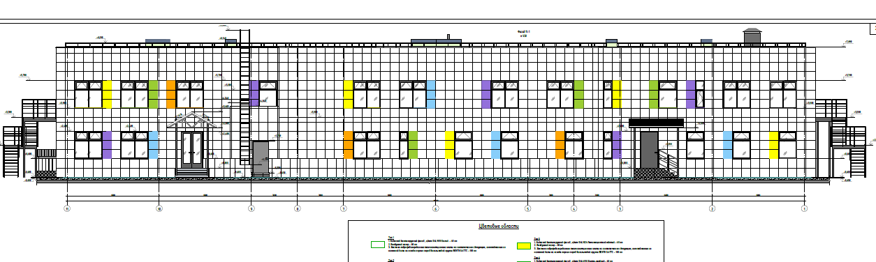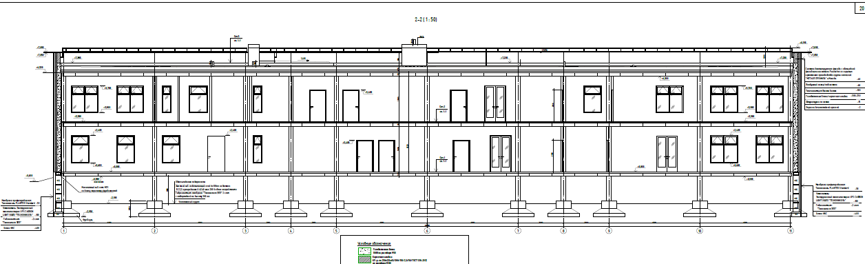 Существующее здание детского сада - двухэтажное с техническим подпольем для прокладки инженерных коммуникаций. Здание построено по типовому проекту 212-2-41/75. Здание имеет прямоугольную форму с выступом на северном фасаде. Размеры существующего здания в осях А-В – 12,0 м; в осях 1-11 – 48,0 м; выступающая часть в осях В-Г - 3,0 м; в осях В-Г - 3,0 м. После реконструкции габариты здания составляют 13,42 м х 49,42 м; выступающая часть 3,0 м х 24,0 м. Высота этажей от уровня чистого пола до потолка составляет 3,0 м. Высота технического подполья от уровня чистого пола до низа перекрытий составляет 1,8 м. Отметка верха парапета существующая +7.200, после реконструкции +7.890. За относительную отметку 0.000 принята отметка уровня чистого пола первого этажа, соответствующая существующей абсолютной отметке 207.73. Существующие несущие конструкции здания – железобетонный пространственный каркас с самонесущими панельными стенами толщиной до 320 мм. Здание каркасного типа.