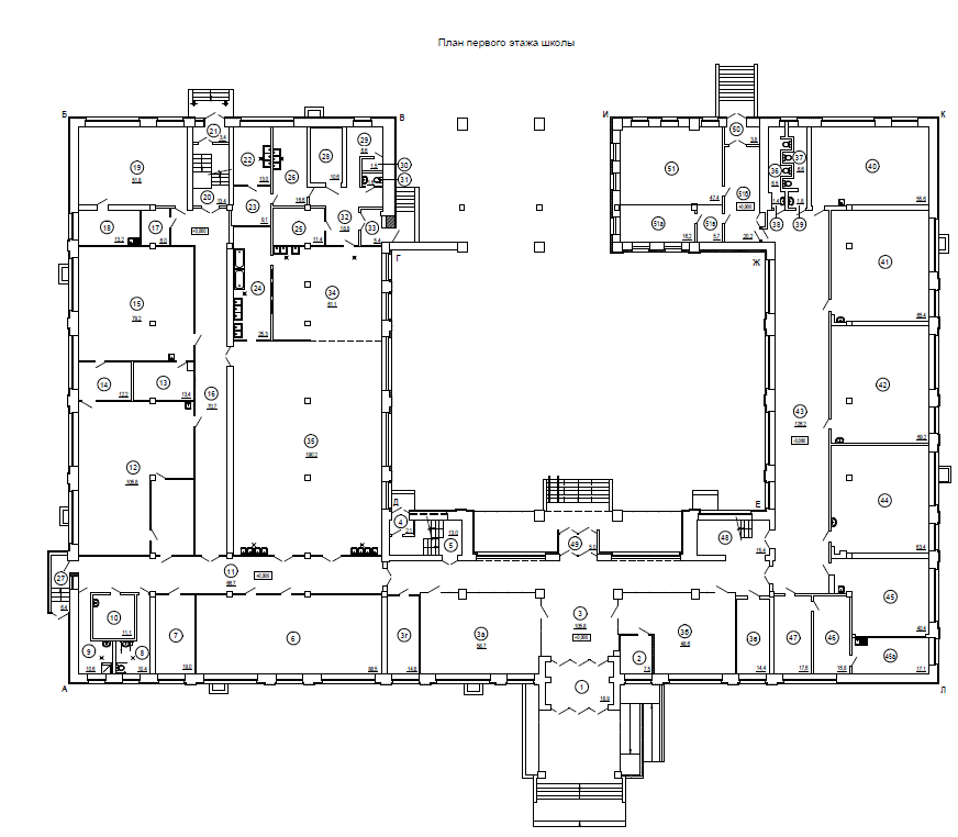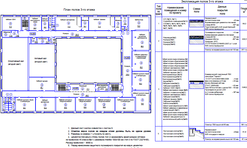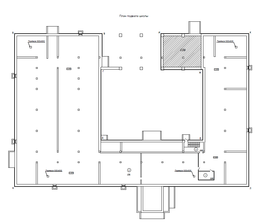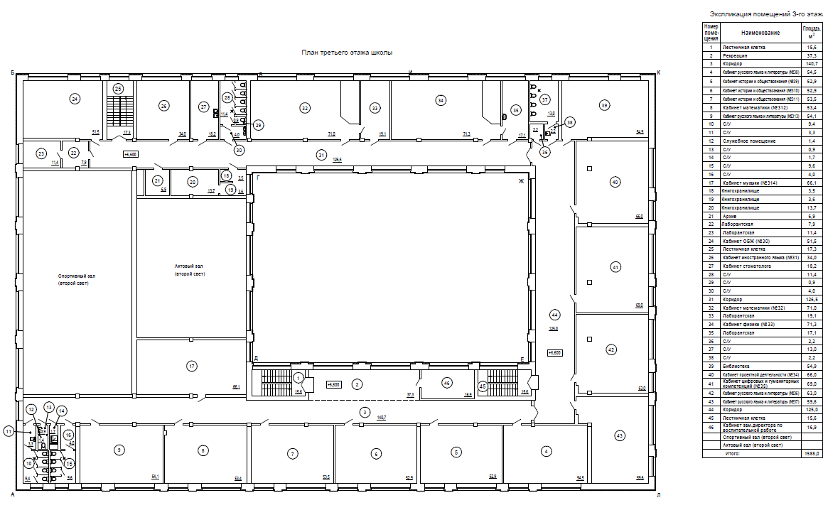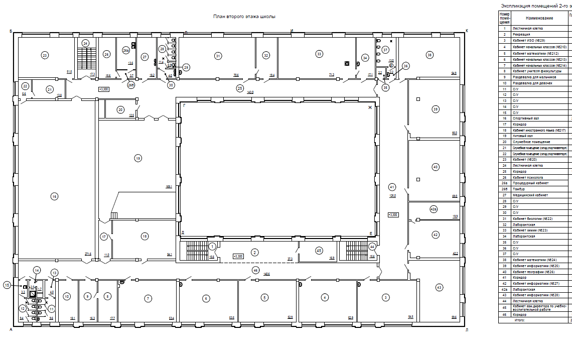 Высота помещений школы (от пола до низа плит перекрытия) — 3 м.