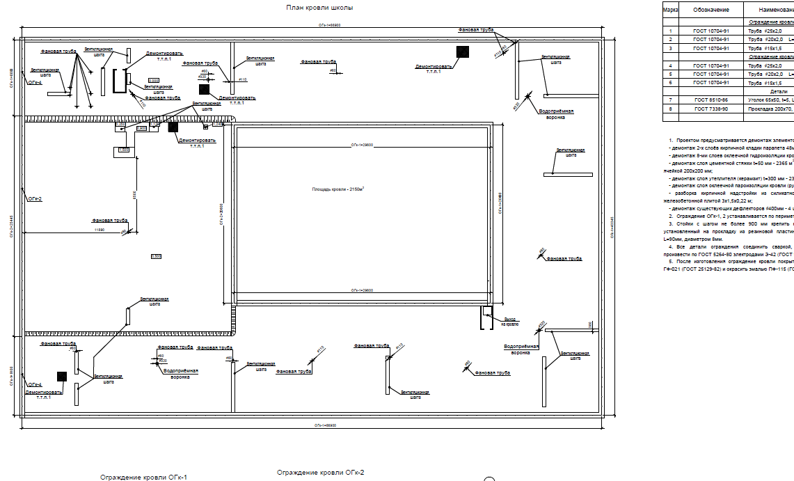 Здание школы построено по типовому проекту 224-1-194, в плане прямоугольное, размеры по внешним габаритам 43,75х67,28 м с внутренним двором размером 20,25х29,22 м. Высота помещений школы (от пола до низа плит перекрытия) — 3 м. Два помещения (спортзал и актовый зал) имеют высоту на два этажа — 6,5 м. Каркас здания школы состоит из продольных и поперечных наружных несущих кирпичных стен (в зависимости от расположения в плане), внутренних ж/б колонн сечением 400х400 мм с ж/б ригелями (между колоннами и наружными кирпичными стенами), а также перекрытий из многопустотных плит (ПК). Помещения спортзала и актового зала перекрыты ребристыми ж/б плитами. Наружные стены здания после реконструкции - трехслойная конструкция, состоящая из силикатного полуторного кирпича (ГОСТ 379-2015) толщиной 640 мм на цементно-песчаном растворе (ГОСТ 28013-98), утеплителя из каменной ваты ТЕХНОФАС ОПТИМА (СТО 72746455- 2018) толщиной 100 мм и тонкослойной декоративной штукатурки ТЕХНОНИКОЛЬ 301 (по типу системы "Сэнарджи"). Кровля школы - выполнена плоской из рулонных материалов (2 слоя покрытия фирмы ТЕХНОНИКОЛЬ) по основанию из 2 слоев ЦСП толщиной 12,5 мм. Утепление кровли выполнено плитами из каменной ваты ТЕХНОРУФ Н ПРОФ (СТО 72745455-3.2.6-2018) толщиной 200 мм, разуклонка к водосточным воронкам выполняется дополнительными слоями утеплителя 30...400 мм. Перед укладкой утеплителя по верху ребристых плит (спортзал и актовый зал) и многопустотных плит (ПК) перекрытия 3 этажа выполняется пароизоляция из 1 слоя Технобарьера. Все материалы по утеплению и устройству кровли выпускаются фирмой ТЕХНОНИКОЛЬ (кроме ЦСП). Существующая организация водостока с кровли — внутренняя с выводом осадков наружу через наружные стены подвала на отмостку.