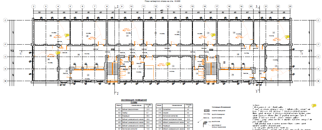 Высота 4-х этажной части, м: 14,5