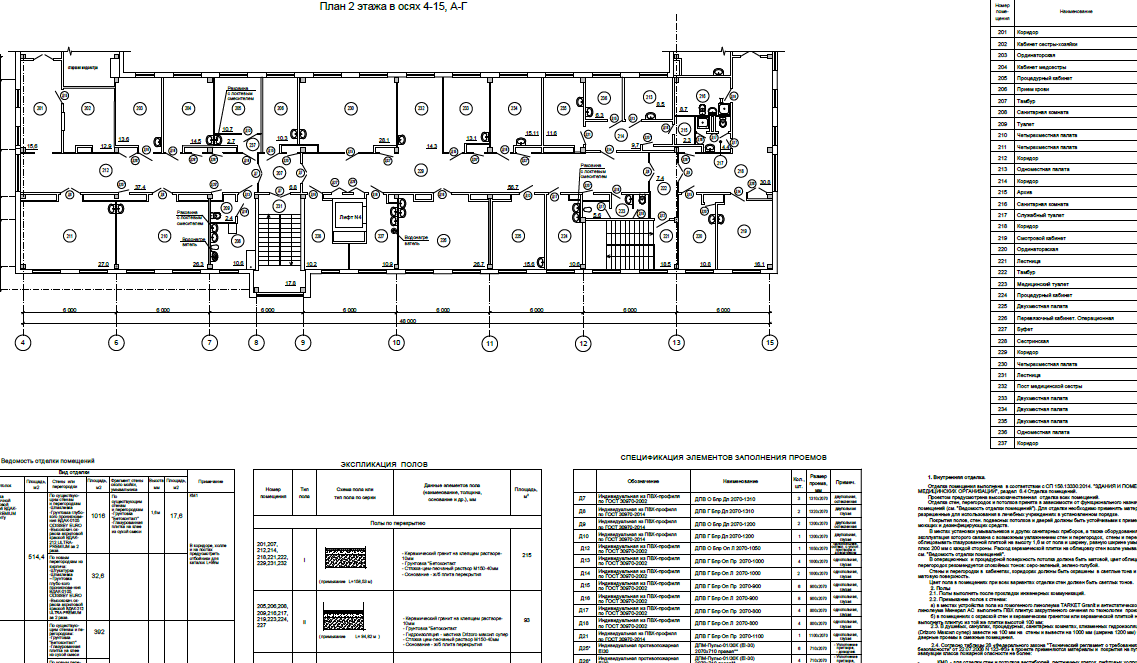 Типовой проект 252-1-45 Главный корпус участковой больницы на 150 коек с поликлиникой на 200 посещений в смену, для строительства в 1В климатическом подрайоне, 2 и 3 климатических районах.