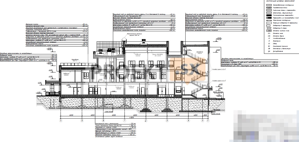 Расчетный уровень грунтовых вод на абс. отм. 174,30. Пожарное депо. Уровень ответственности - нормальный, класс - КС-2. За условную отм. 0,000 принят уровень чистого пола первого этажа, что соответствует абс. отм. 179,80. Конструктивная схема - каркасно-стеновая из монолитного железобетона, максимальный пролет 6,0 м. Монолитные железобетонные конструкции выполняются из бетона класса В30, марки W6 (подземная часть), арматуры классов А500С, А240. Гидроизоляция - окрасочная. Фундаменты, низ на отм. минус 3,800 и минус 4,800 (абс. отм. 176,00 и 175,00 соответственно), по бетонной подготовке из бетона класса В7,5 толщиной 100 мм: столбчатые с плитной частью толщиной от 300 мм до 900 мм; ленточные с плитной частью толщиной 300 мм. Под фундаментами залегает суглинок серовато-коричневый, пылеватый, тяжелый (ИГЭ-2, Е=15,3 МПа). Плита пола по грунту - переменной толщины от 300 мм до 550 ММ. Наружные и внутренние стены подземной части, в том числе стены лестничных клеток, толщиной 200 мм, наружные утепленные на глубину промерзания. Колонны (с максимальным шагом 6,Ох6,О м): подземная часть - сечением 500х500 мм, 600х600 мм; надземная часть - сечением 500х500 мм, 400х400 мм. Внутренние стены надземной части, в том числе стены лестничных клеток - толщиной 200 мм. Наружные стены надземной части: газобетонные блоки (плотностью 600 кг/м3) , толщиной 200 мм с утеплением и облицовкой металлокасетами; монолитный железобетон толщиной 200 мм с утеплением и облицовкой металлокасетами. Крепление металлокасет предусмотрено к монолитным железобетонным конструкциям. Перекрытия и покрытие - плиты толщиной 200 мм и 220 мм, с балками (сечением от 200x550(h) мм до 500x1400(h) мм) на отдельных участках. На плите покрытия предусмотрена установка мачты связи заводского изготовления с растяжками. Лестничные марши и площадки из монолитного железобетона. Учебно-тренировочный снаряд «Башня со скалодромом» Отм. 0,000 соответствует абс. отм. 180,30. Уровень ответственности - нормальный, класс - КС-2. Конструктивная схема - перекрестно-стеновая из монолитного железобетона. Монолитные железобетонные конструкции выполняются из бетона класса В30, марки W6 (подземная часть), арматуры классов А500С, А240. Фундамент - свайный. Сваи (висячие) - диаметром 350 мм, длиной 9,0 м. Под концом свай залегает суглинок полутвердый (ИГЭ-4, Е=21,5 МПа). Ростверк - ленточный сечением 500х600 (h) мм, низ на отм. минус 0,800 (абс. отм. 179,50), по бетонной подготовке из бетона класса В7,5 толщиной 100 ММ. Гидроизоляция - окрасочная. Наружные стены - монолитный железобетон толщиной 200 мм с утеплением и устройством сертифицированной фасадной системы. Внутренние стены - толщиной 200 мм. Перекрытия, покрытие (пролет до 5,6 м) - плиты толщиной 200 ММ. Лестничные марши и площадки из монолитного железобетона. Полосы психологической подготовки спасателей (огневая полоса), включая трап над приямком, эстакаду, подвал, лабиринт, колодец, кабельный коллектор, качающийся трап. Трап над приямком - стальной каркас из прокатных профилей (сталь С245). Трап расположен над монолитным железобетонным (бетон классаВ25, марок W6 и F150) приямком с размерами в плане 6,4х3,2 м и глубиной 1,8 м, толщиной 200 мм (стены и днище). В зоне оттирания стальных стоек трапа в стенах приямка предусмотрено утолщение до 400 мм. На отдельных участках трап опирается на монолитные железобетонные (бетон класса В25, марок Wб и F150) столбчатые фундаменты, с заглублением 1,8 м от поверхнос