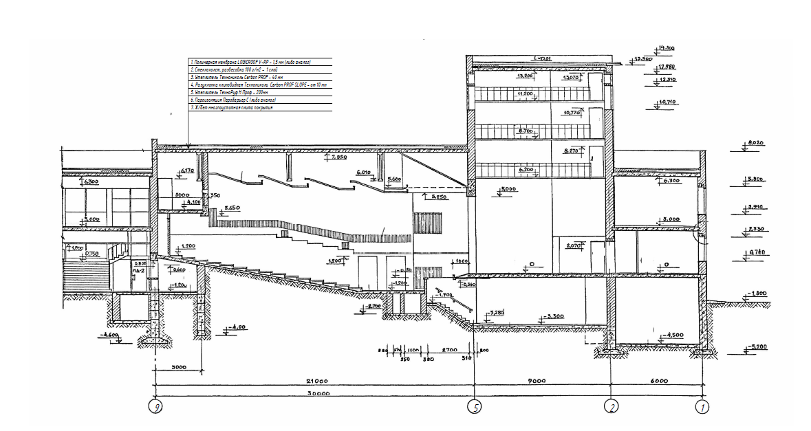 5 эт (в осях 1-5…В-Ж; 3-5 – технические этажи)
