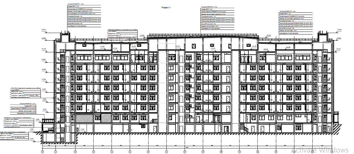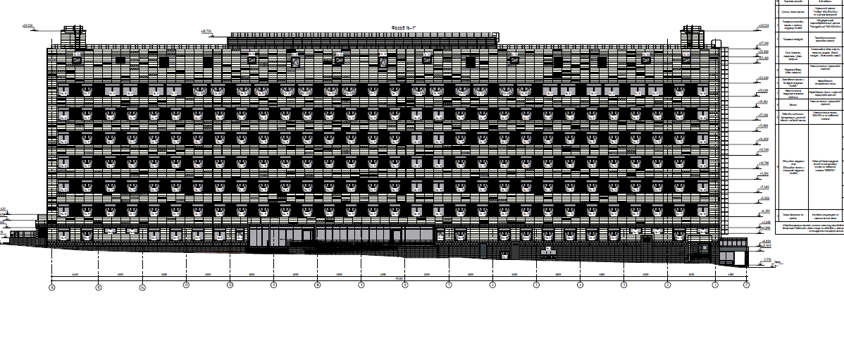Размеры здания в осях «А-Д»/«1-16» - 21,000×90,800 м соответственно. Высота здания – 27,2 м. Высота