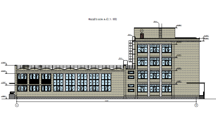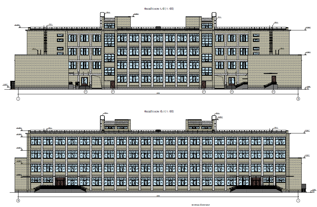 Здание школы построено по типовому проекту 2Лг-02-2, в плане состоит из трех объемов - основного четырехэтажного и примыкающих к нему двух двухэтажных. Высота двухэтажных объемов 7,6 м, высота основного четырехэтажного объема объема 14,5 м. Все 3 объема здания имеют подвал. Высота подвала - 2,1 м; высота этажа (1-4 этажи) - 3 м (от отметки чистого пола до потолка). За отметку 0.000 принят уровень чистого пола первого этажа здания. Общая площадь 4265,7 м2, основное строение - 972,0 м2, боковые строения - 759,3 м2, подвал- 1731,3 м2. Наружные стены здания выполнены из силикатного кирпича, простенки и перемычки над окнами бетонные, часть оконных проемов заложена газобетонными блоками или кирпичом и оштукатурена, материал облицовки цоколя -натуральный камень (путиловская плита). Кровля плоская с парапетным ограждением в торцевых частях здания, покрытие кровли - рулонный гидроизоляционный ковер, покрытие парапетов - металл. На фасаде здания размещены металлические пожарные лестницы. Кирпичное парапетное ограждение кровли имеется тольков торцевых частях здания. Существующие оконные блоки ПВХ белого цвета с двойным стеклопакетом. Существующие входные дверные блоки - металлические, глухие, серого и коричневого цветов. На фасадах здания имеются вентиляционные проемы.