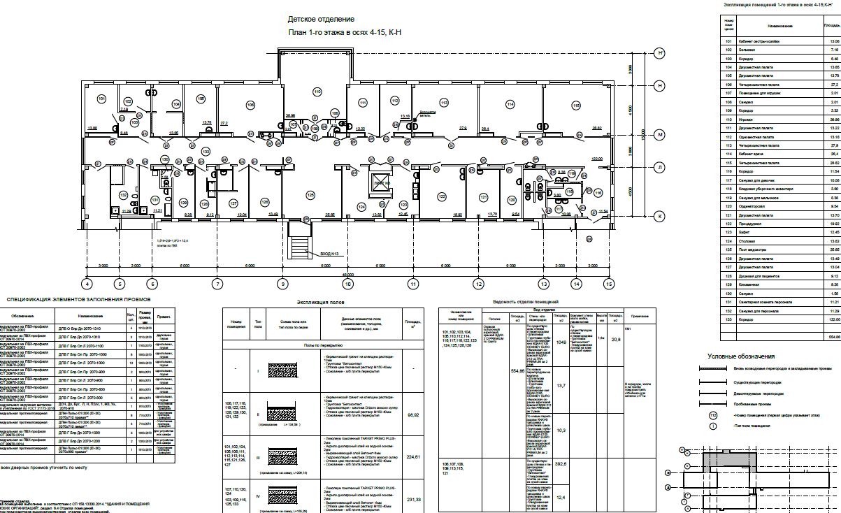 Типовой проект 252-1-45 Главный корпус участковой больницы на 150 коек с поликлиникой на 200 посещений в смену, для строительства в 1В климатическом подрайоне, 2 и 3 климатических районах.